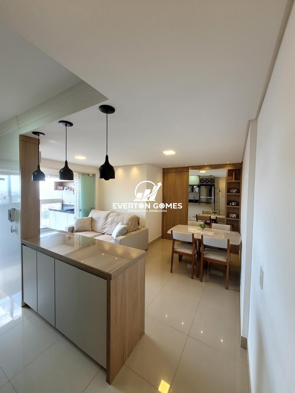 🛋️ Sala de TV integrada à varanda gourmet com porta de vidro 5 folhas